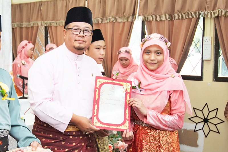 Seterusnya, tetamu kehormat turut menyempurnakan penyampaian sijil kepada para peserta khatam, diiringi persembahan dikir oleh para pelajar.