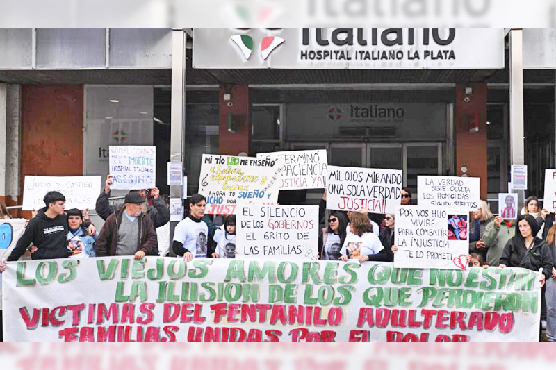 Dua minggu lalu, waris mangsa mengadakan tunjuk perasaan di hadapan sebuah hospital di La Plata, selatan Buenos Aires, tempat kematian pertama berlaku, menuntut ‘keadilan untuk mangsa fentanyl’.