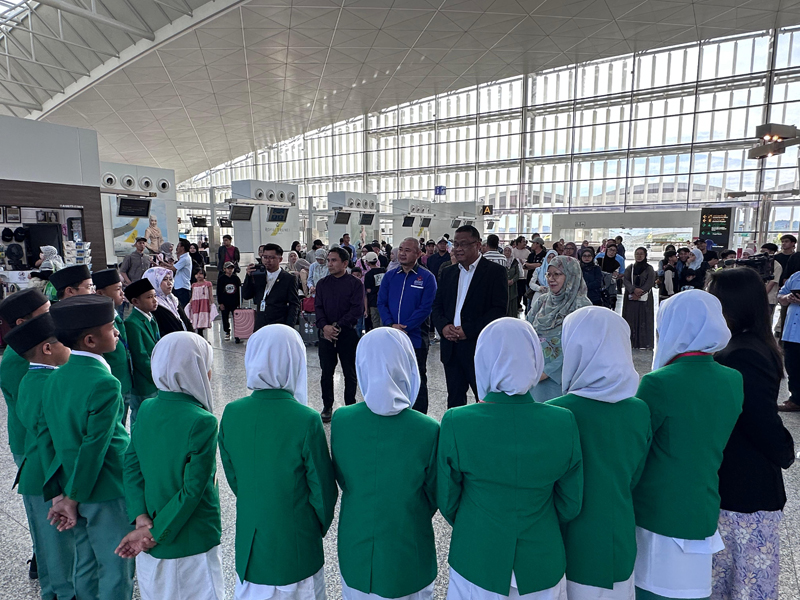 Turut hadir di lapangan terbang ialah pegawai-pegawai Kementerian Pendidikan dari JSSA, wakil pentadbiran SR Pg Setia Jaya Pg Abdul Momin serta ibu bapa dan ahli keluarga para pelajar.
