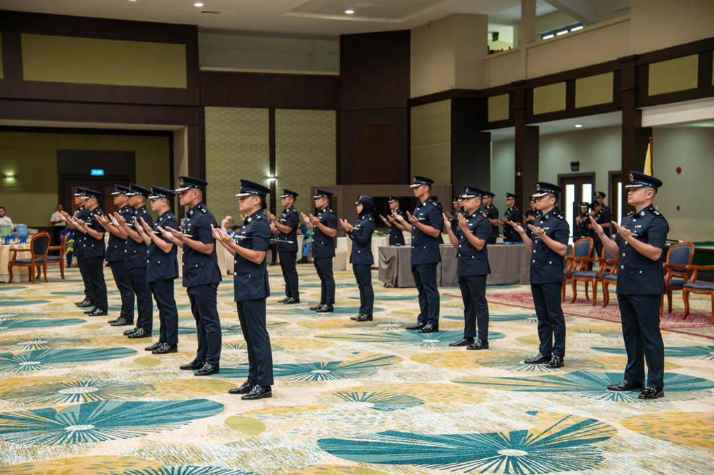 Majlis dimulakan dengan bacaan doa selamat yang dipimpin oleh Imam Surau Ibu Pejabat Polis Gadong, APO Staf Sarjan 6472 Mohd Yusri bin Haji Abu Bakar, diikuti dengan penyampaian penetapan pangkat dan sesi bergambar ramai bersama pegawai serta keluarga masing-masing.