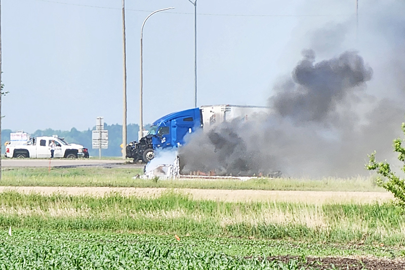 Kemalangan tersebut berlaku di lebuh raya Trans Kanada di utara Carberry.