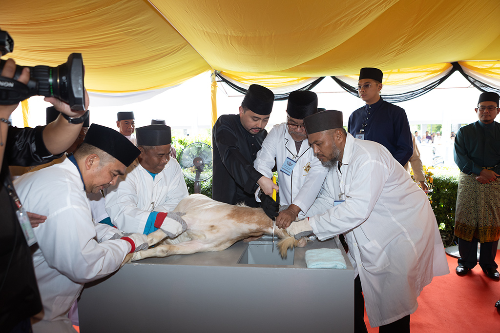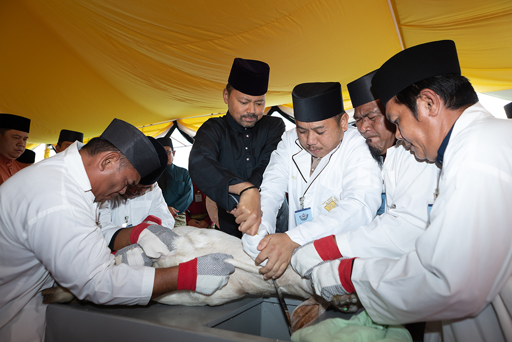 Pada majlis berkenaan, dua ekor kambing disempurnakan penyembelihannya oleh Duli Yang Teramat Mulia Pengiran Muda Mahkota dan Duli Yang Teramat Mulia Paduka Seri Pengiran Muda ‘Abdul Malik.
