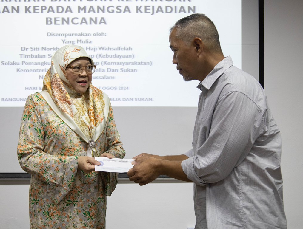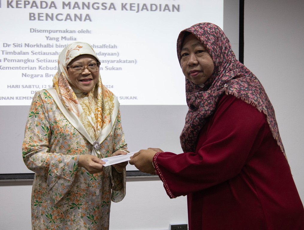 BANDAR SERI BEGAWAN, 18 OGOS – Seramai 16 ketua keluarga yang terlibat dalam kejadian banjir, kebakaran dan rumah roboh kelmarin telah menerima bantuan kewangan Kerajaan Kebawah Duli Yang Maha Mulia Paduka Seri Baginda Sultan dan Yang Di-Pertuan Negara Brunei Darussalam melalui Jabatan Pembangunan Masyarakat, Kementerian Kebudayaan, Belia dan Sukan (KKBS).