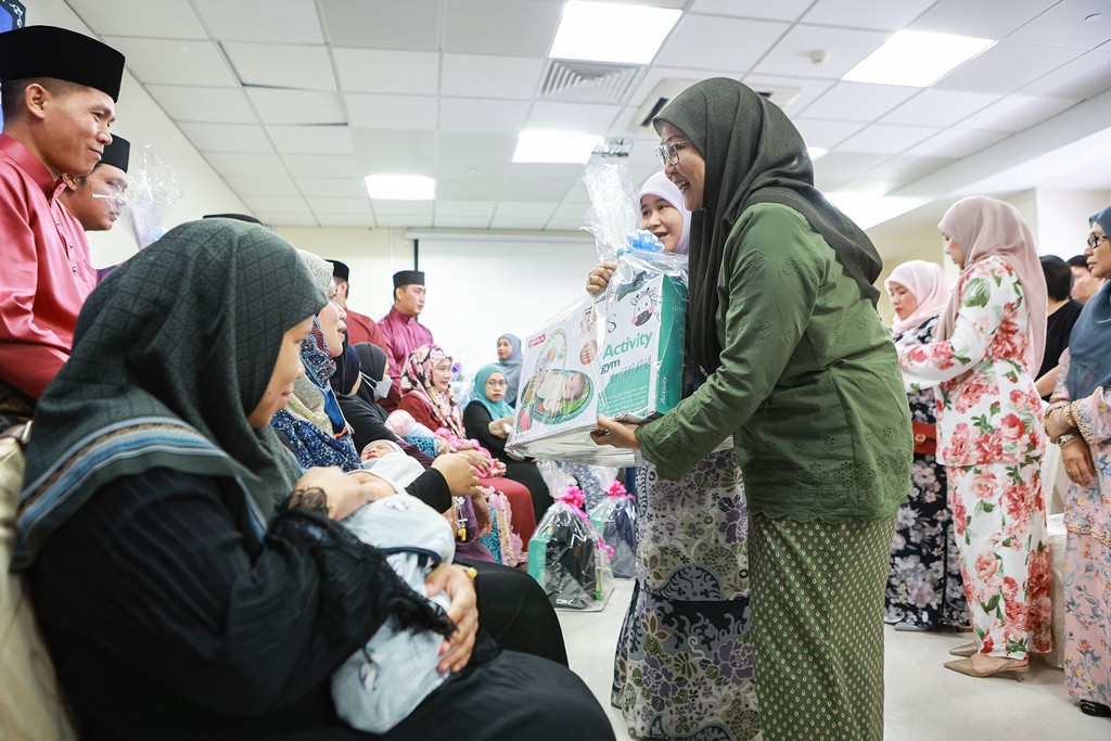 Di majlis itu, tetamu-tetamu kehormat seterusnya menyampaikan cenderamata berupa wang yang dikreditkan ke dalam Akaun Simanja di Perbadanan Tabung Amanah Islam Brunei (TAIB), barang keperluan anak damit dan ibu, serta potret kenangan ibu-bapa dengan anak damit sumbangan daripada Jawatankuasa Kebangsaan Sambutan Perayaan Ulang Tahun Hari Keputeraan Baginda Ke-78 bagi tahun ini.