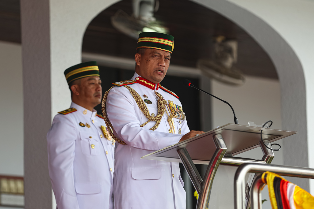 Upacara dimulakan dengan pemeriksaan perbarisan oleh Brigedier Jeneral Aldi dan disusuli dengan penyampaian ucapan.