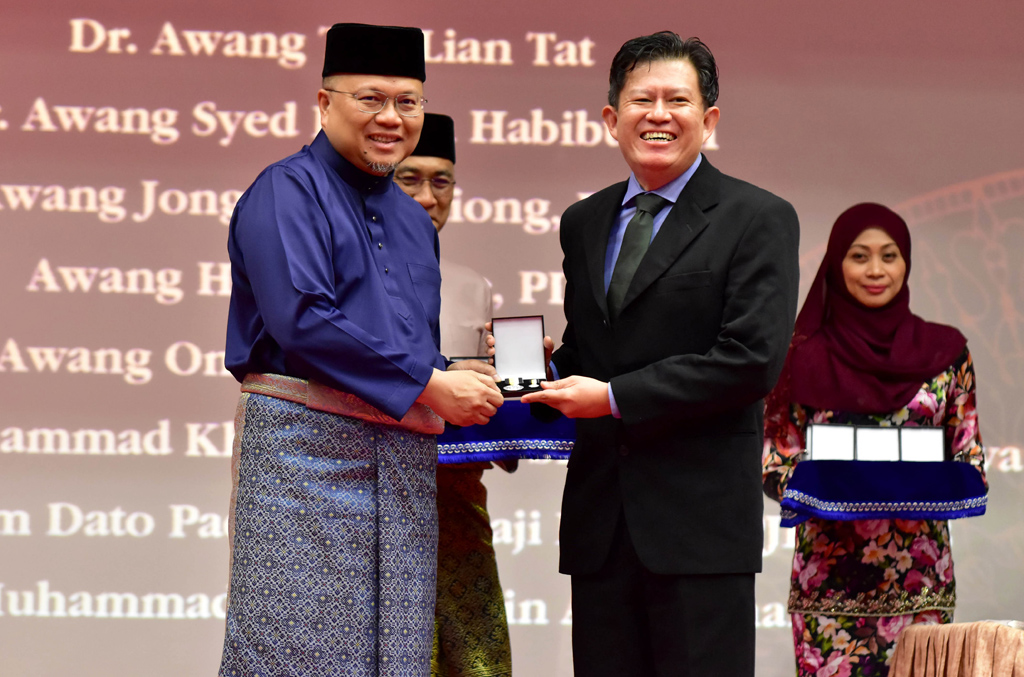 Hadir untuk menyempurnakan penyampaian pingat kepada para penerima yang diraikan ialah Menteri Kesihatan, Yang Berhormat Dato Seri Setia Dr Haji Mohammad Isham bin Haji Jaafar.