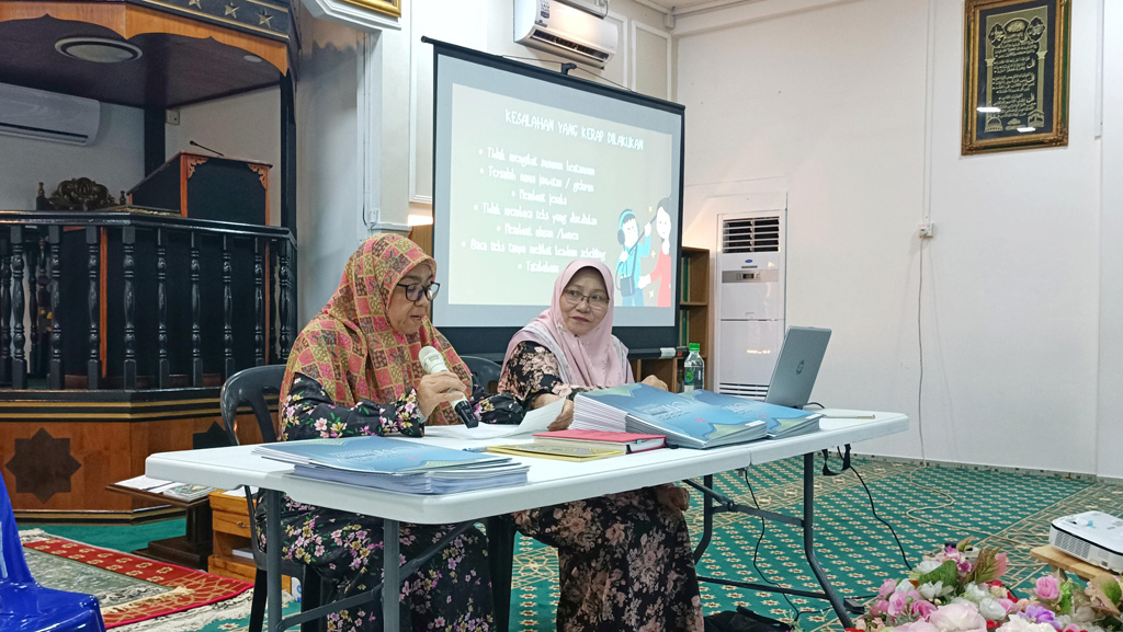 Guru Ugama Terlatih Tingkat Khas yang juga Ketua Unit Kelas Bimbingan Muslimah, Jabatan Hal Ehwal Masjid, Hajah Nadhirah binti Haji Lahit selaku pemudah cara bengkel berkenaan.