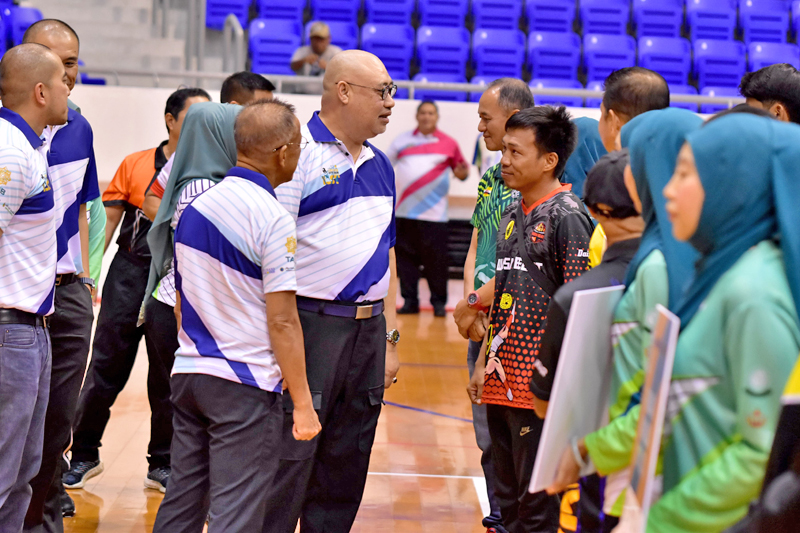 Yang Berhormat Dato turut diperkenalkan kepada ketua-ketua pasukan yang menyertai kejohanan berkenaan sebelum menyaksikan perlawanan pembukaan Liga Super Sepak Takraw TAIB 2025 di antara Majlis Sukan Pasukan Polis Diraja Brunei A (MS PPDB A) menentang Muara Spurs B.