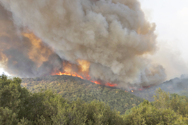 Kebakaran besar ketiga bermula kelmarin di pulau Cycladic Andros dan masih terbakar di luar kawalan hari ini, dengan 73 anggota bomba, dua pesawat dan dua helikopter memadamkan api. Kilat petir disyaki telah mencetuskan kebakaran hutan itu. – AP