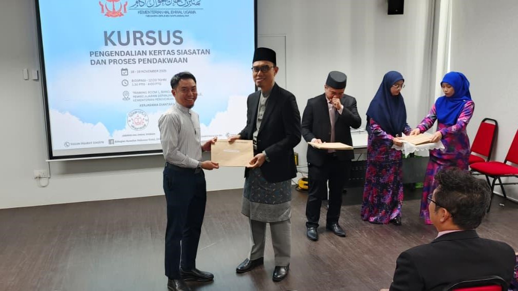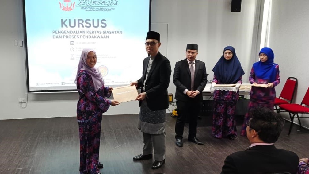 BANDAR SERI BEGAWAN, 20 NOV – Seramai 76 peserta menerima sijil setelah menamatkan Kursus Pengendalian Kertas Siasatan dan Proses Pendakwaan selama dua hari anjuran Jabatan Hal Ehwal Syariah, Kementerian Hal Ehwal Ugama di Bangunan Lifelong Learning Centre, Kementerian Pendidikan kelmarin,