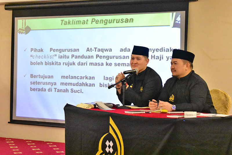 Hadir semasa sesi taklimat berkenaan ialah Pengarah Urusan At-Taqwa Travel Tours, Pengiran Haji Rosdimar bin Pengiran Haji Omaralli yang turut menyampaikan ucapan serta pesanan kepada para bakal jemaah haji.
