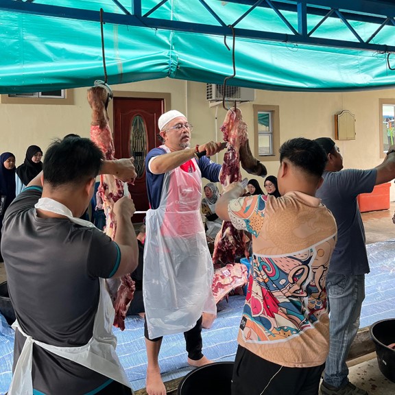 Daging-daging korban kemudian telah diagihkan secara drive-thru kepada para peserta korban serta golongan asnaf. Penyampaian daging disempurnakan oleh Faidil Rosemady bin Mohamad, yang turut mengetuai bacaan takbir Hari Raya dan doa kesyukuran sebagai penutup majlis.