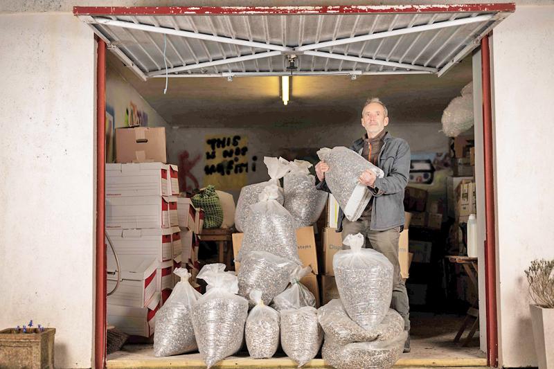 Setelah kering dan disusun semula, dia menyatukan kutipannya dengan 20 juta nurdles yang telah dikumpulkannya sebelum ini dalam tempoh enam tahun yang disimpan di garaj rakannya.