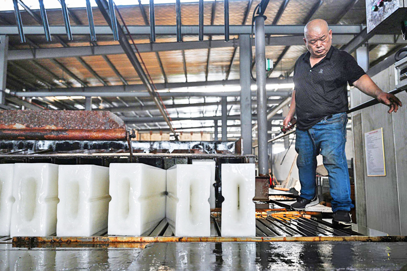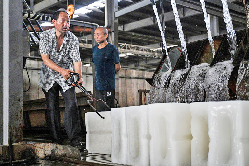 HANGZHOU – Di dalam bilik bersiling tinggi di pinggir bandar Hangzhou di timur China, para pekerja menggunakan penyepit untuk meluncurkan bongkah besar ais putih beku di sepanjang landasan logam ke dalam trak sejuk. Jualan meningkat dalam beberapa minggu kebelakangan ini, dirangsang oleh gelombang haba yang melanda seluruh negara ketika musim panas bermula, beritahu pemilik kilang