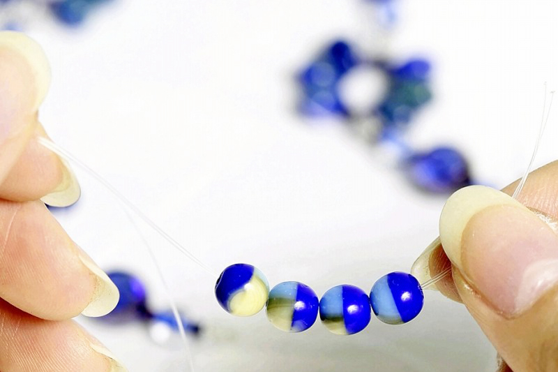 “Dengan mengikat manik dalam corak tertentu sementara mempertimbangkan bentuk dan saiz, awda boleh membuat rantai yang seimbang,” kata Shizukusa.