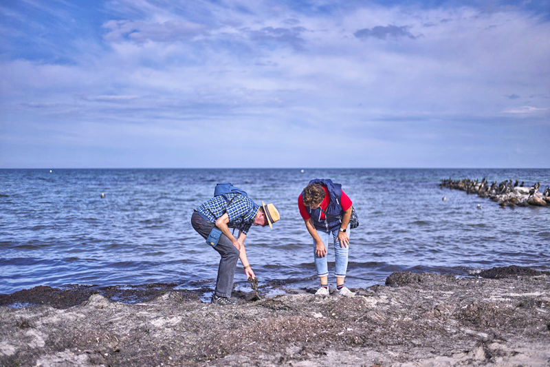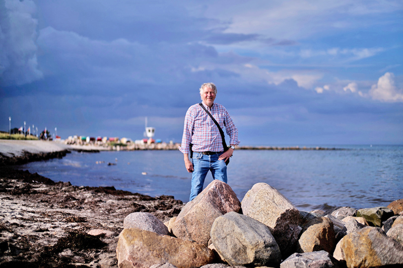 Dia berjalan di sepanjang laluan pejalan kaki di kampung Dahme di pantai pesisir Baltik Jerman, memeriksa arah angin dan ombak, melihat pelbagai jenis kerang dan alga yang terdampar, dan menunjuk kepada satu bonjolan kecil di pantai.