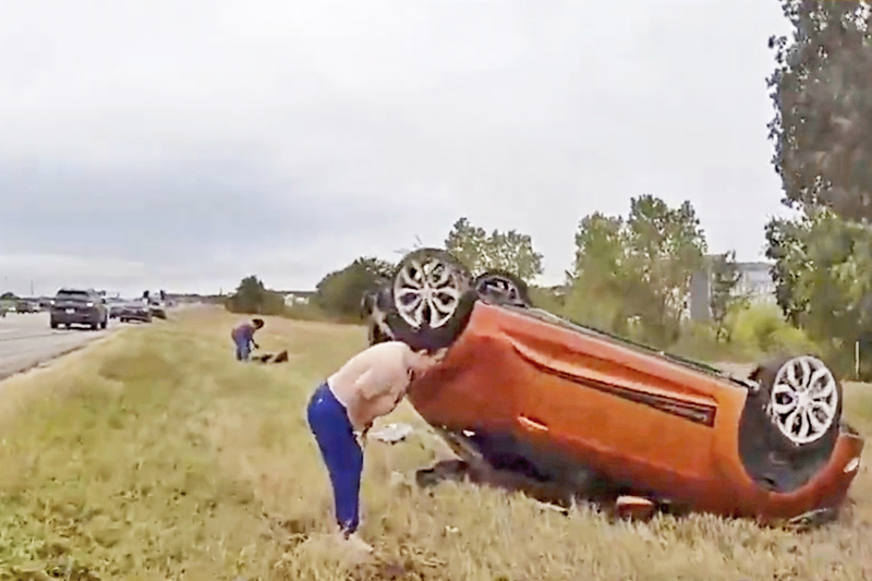 Rakaman kamera badan yang dikongsi di media sosial oleh Jabatan Polis Fort Worth pada Jumaat menunjukkan seorang pegawai berlari ke arah kereta yang terbalik dan mula mencari anak damit tersebut, sementara seorang wanita yang cemas kedengaran menjerit memanggil anaknya di latar belakang.