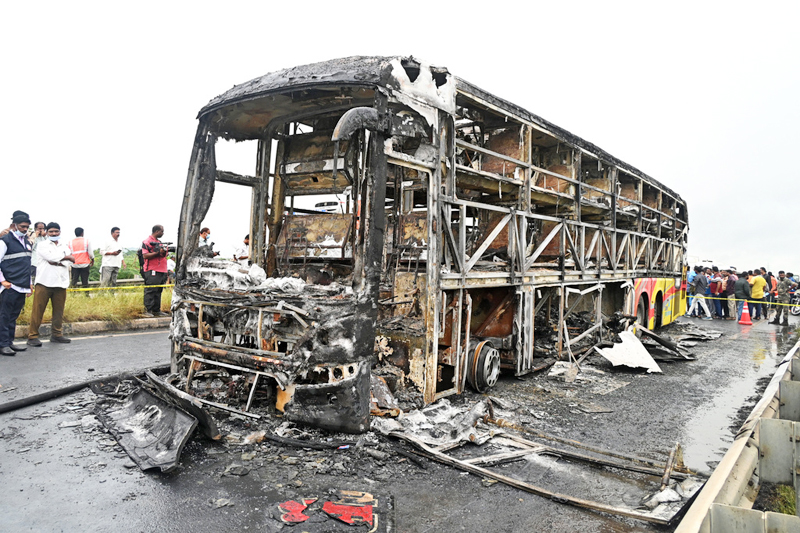 Menurut polis, bas yang membawa 42 penumpang dari Hyderabad ke Bengaluru itu terbakar selepas bertembung dengan sebuah motosikal di daerah Kurnool.
