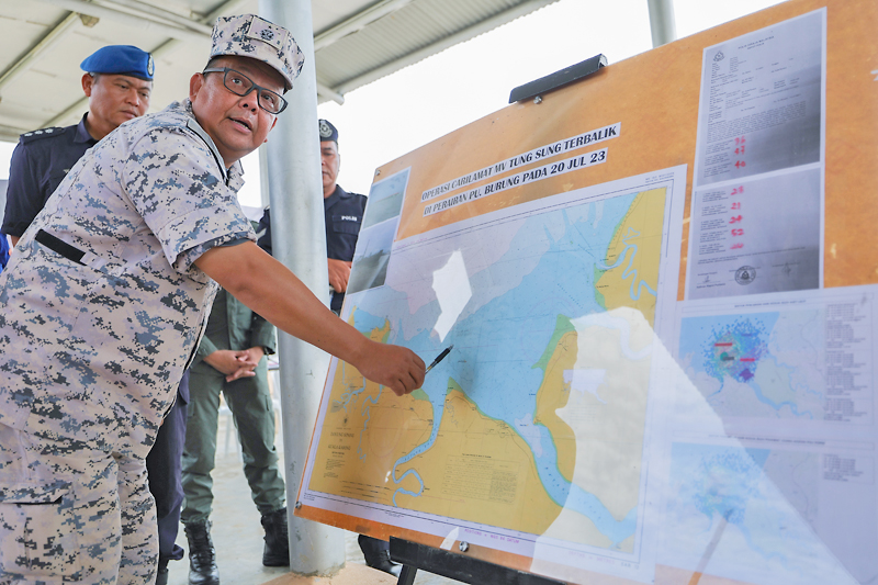 SEBUYAU, SARAWAK, 21 JULAI – Proses pengapungan kapal menjadi pilihan terbaik untuk mengesan kesemua kru yang dipercayai hilang dalam insiden kapal dikenali sebagai MV Tung Sung, yang terbalik kira-kira empat batu nautika ke barat laut Pulau Burung berdekatan perairan Sebuyau, di sini pada Rabu lepas.