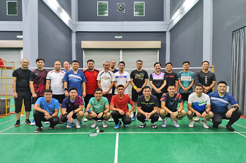 Para pemain Syarikat Penerbangan Diraja Brunei (RB) dan Pasukan Polis Diraja Brunei (PPDB) Cawangan Airport bergambar ramai selepas mengadakan sesi perlawanan persahabatan badminton yang berlangsung baru-baru ini.
