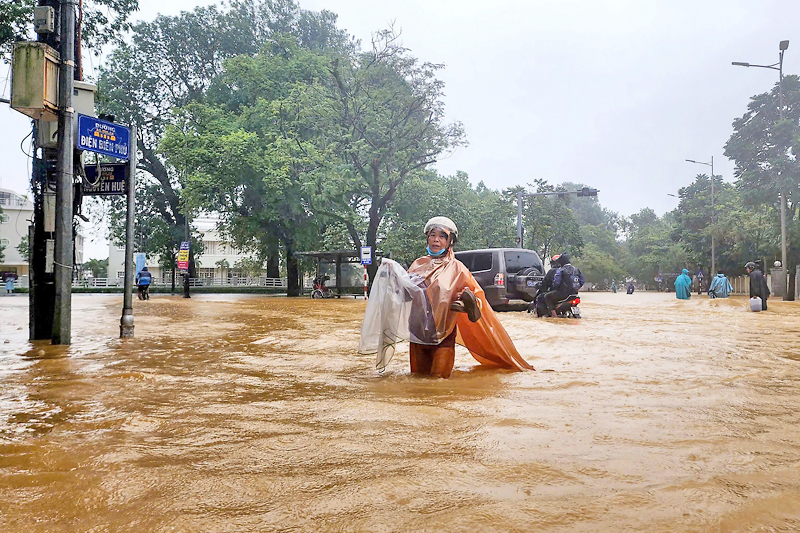 Hujan lebat telah menenggelamkan kawasan pesisir tengah Vietnam sejak hujung minggu, menutup sekolah dan membasahi bandar bersejarah Hue, yang merupakan tapak warisan dunia UNESCO.