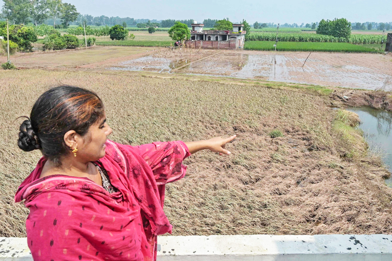 GURDASPUR, INDIA – Sawah penuh tetapi padi berwarna perang kekuningan dan layu, dan udara diselubungi dengan bau busuk tanaman dan ternakan. Ini susulan hujan monsun teruk yang telah memusnahkan kawasan penanaman bijirin India.