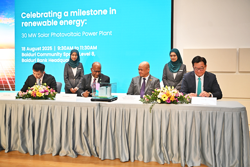BANDAR SERI BEGAWAN, 18 OGOS – Bank Baiduri mengumumkan peranannya sebagai pembiaya tunggal loji jana kuasa fotovoltaik solar berskala besar pertama di Negara Brunei Darussalam yang menandakan satu langkah penting dalam perjalanan kemampanan bank berkenaan serta peralihan tenaga negara.