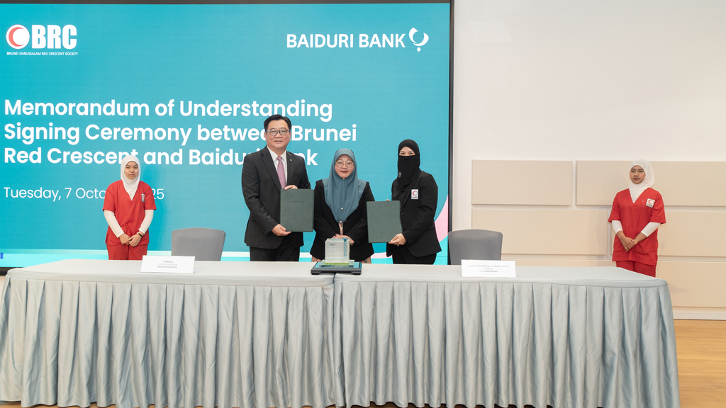 BANDAR SERI BEGAWAN, 7 OKT – Sebagai meneruskan komitmen berpanjangannya kepada pembangunan masyarakat, Bank Baiduri memeterai Memorandum Persefahaman (MoU) dengan Persatuan Bulan Sabit Merah Brunei Darussalam (BRC) dalam majlis penandatanganan yang berlangsung di Ibu Pejabat Bank Baiduri, hari ini.