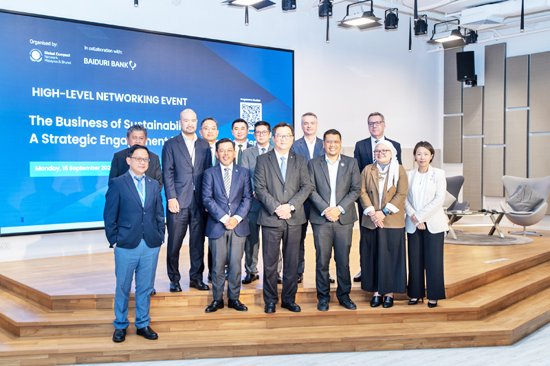BANDAR SERI BEGAWAN, 15 SEPT – Bank Baiduri, dengan kerjasama United Nations Global Compact Network Malaysia & Brunei (UNGCMYB), berjaya menganjurkan acara rangkaian eksklusif, The Business of Sustainability: A Strategic Engagement for Bruneian Leaders yang berlangsung di Ruang Komuniti Baiduri, Ibu Pejabat Bank Baiduri.