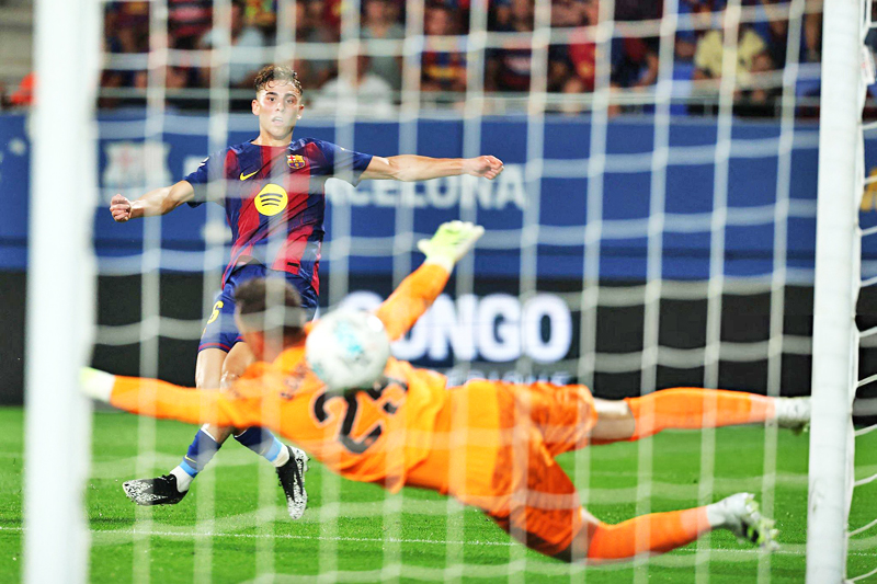 BARCELONA, SEPANYOL, 15 SEPT – Robert Lewandowski, Raphinha dan Fermin Lopez masing-masing menjaringkan dua gol ketika Barcelona membelasah Valencia 6-0 kelmarin dalam aksi La Liga yang terpaksa dilangsungkan di stadium latihan disebabkan penangguhan dalam pembukaan semula Spotify Camp Nou.