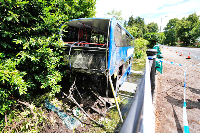 LONDON, 27 JUN – Sebuah bas dua tingkat yang membawa pelajar sekolah menengah terjunam ke dalam sungai di selatan England kelmarin, menyebabkan pemandu dan empat remaja dimasukkan ke hospital manakala puluhan yang lain mengalami kecederaan ringan, menurut pihak berkuasa.
