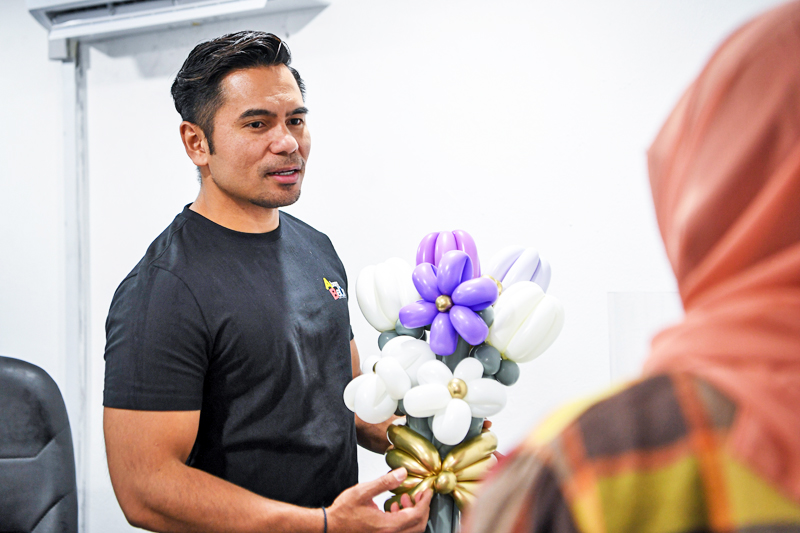 KUALA LUMPUR – Hanya dalam dua minit, beberapa biji belon biasa bertukar menjadi sekuntum bunga raya di tangan Syed Shahrizal Syed Othman, yang lebih dikenali sebagai ‘Abang Belon Cakewhat’.