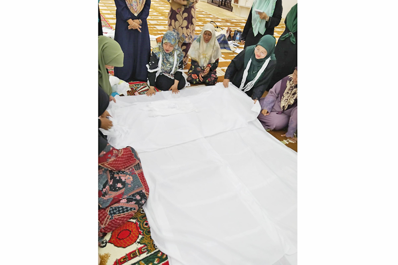 BANDAR SERI BEGAWAN, 20 JUN – Jabatan Hal Ehwal Masjid melalui Bahagian Hal Ehwal Muslimah telah meneruskan lagi siri Bengkel Menyempurnakan Jenazah, hari ini, dengan penyertaan seramai 24 orang Muslimah dari Kelas Bimbingan Muslimah di Daerah Brunei dan Muara.