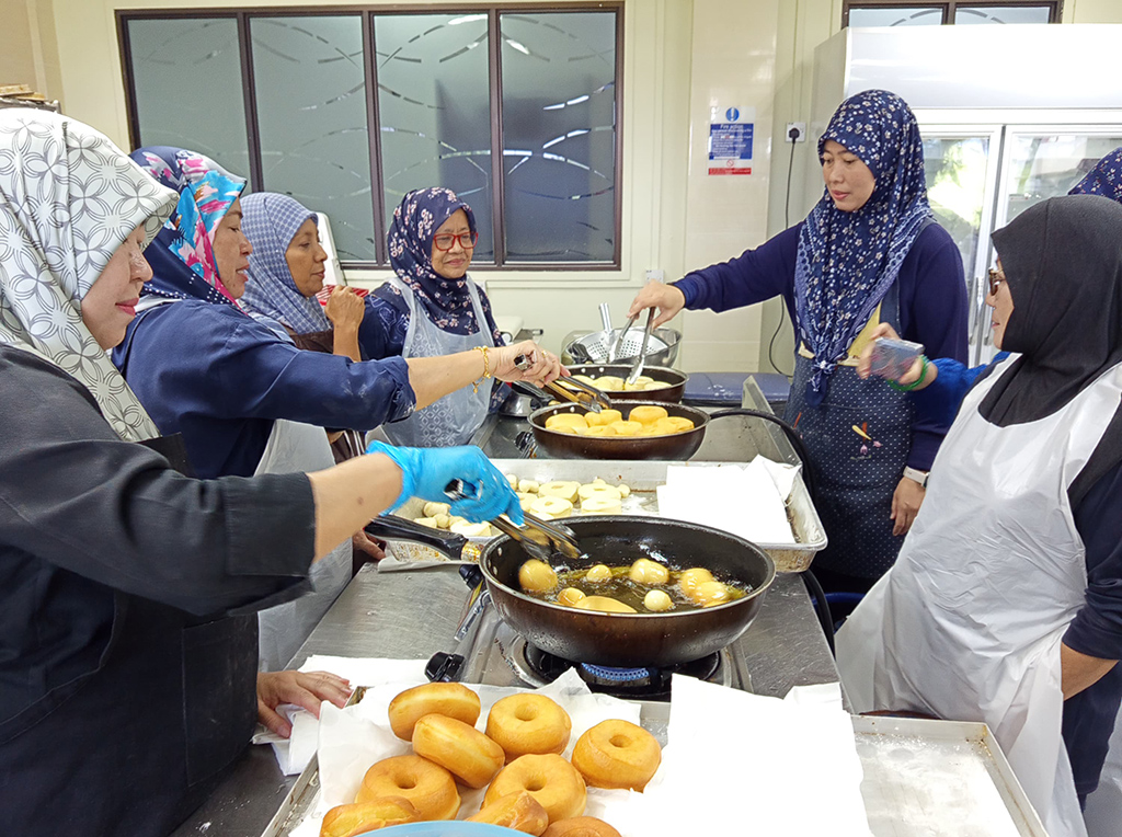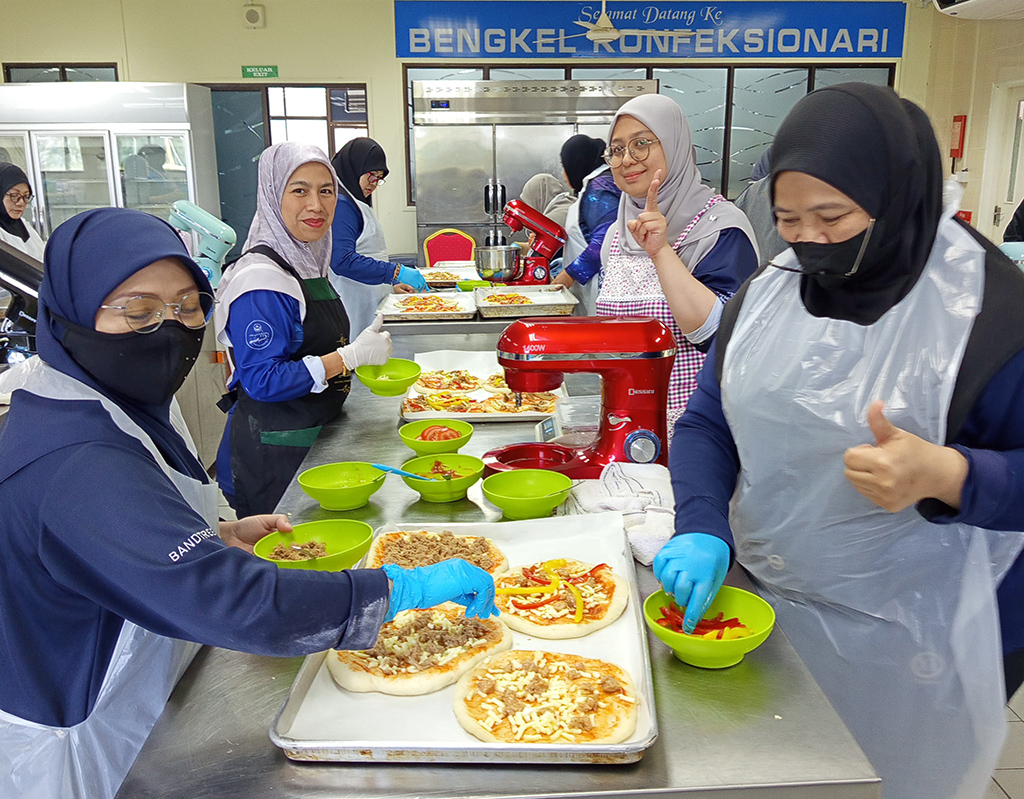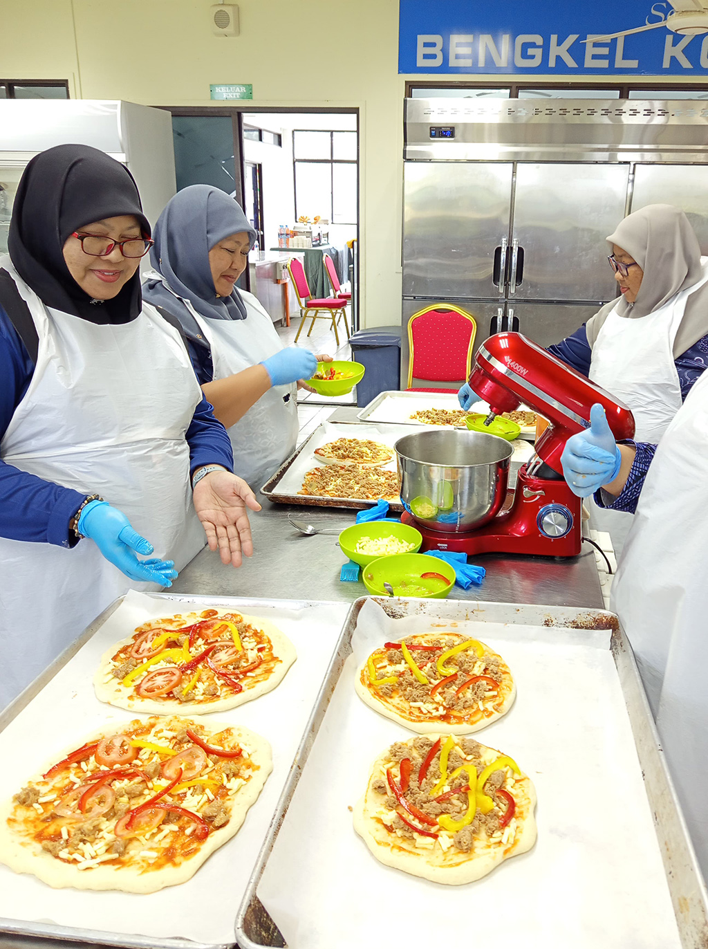 BANDAR SERI BEGAWAN, 23 JUN – Seramai 21 peserta yang terdiri daripada ahli Majlis Perundingan Kampung (MPK) Biro Wanita Berserumpun Kawasan 4 Rancangan Perumahan Negara (RPN) Kampung Panchor, ibu tunggal dan suri rumah telah menyertai bengkel membuat piza dan donat yang berlangsung di Pusat Pembangunan Belia (PBB), Kampung Tanah Jambu.