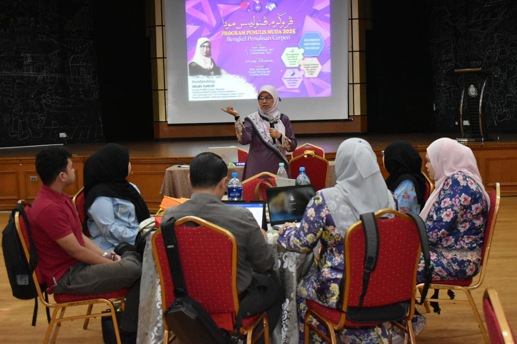 BANDAR SERI BEGAWAN, 5 NOV -Dewan Bahasa dan Pustaka (DBP) melalui Bahagian Sastera dan Majalah meneruskan lagi Program Penulis Muda 2025: Bengkel Penulisan Cerpen yang berlangsung di Balai Sarmayuda, DBP, Berakas, hari ini.