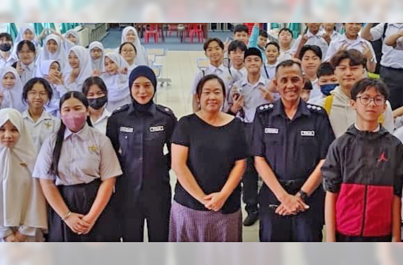 Turut hadir bagi menyokong usaha pendidikan keselamatan siber dan pencegahan buli dalam kalangan pelajar ialah pengetua sekolah, Chin Chiew Eng.