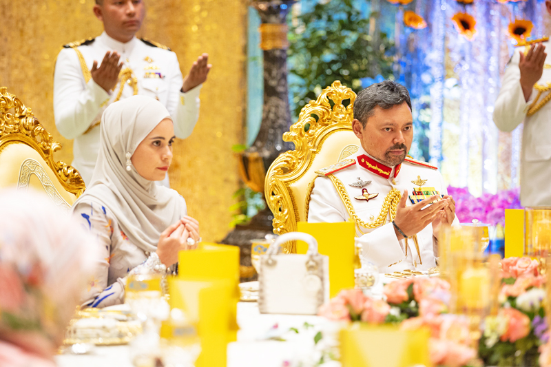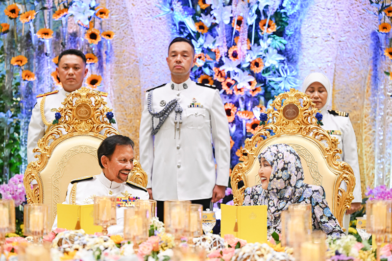 BANDAR SERI BEGAWAN, 28 JULAI – Kebawah Duli Yang Maha Mulia Paduka Seri Baginda Sultan Haji Hassanal Bolkiah Mu’izzaddin Waddaulah, Sultan dan Yang Di-Pertuan Negara Brunei Darussalam dan Kebawah Duli Yang Maha Mulia Paduka Seri Baginda Raja Isteri Pengiran Anak Hajah Saleha, kelmarin, berkenan berangkat ke Majlis Persantapan bagi Pegawai-pegawai Keselamatan dan Pegawai Yang Beruniform serta Pertubuhan-pertubuhan Awam Yang Beruniform sempena Ulang Tahun Hari Keputeraan Baginda Sultan ke-78 Tahun di Istana Nurul Iman.