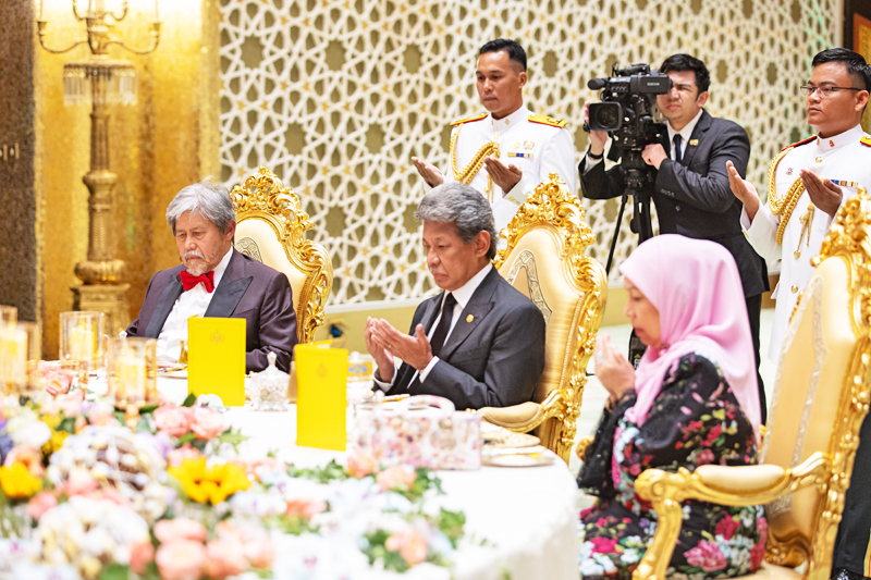 Terdahulu, Majlis Persantapan itu dimulakan dengan lagu kebangsaan Allah Peliharakan Sultan, diikuti dengan Doa Selamat yang dibacakan oleh Mufti Kerajaan, Yang Berhormat Pehin Datu Seri Maharaja Dato Paduka Seri Setia (Dr) Ustaz Haji Awang Abdul Aziz bin Juned.