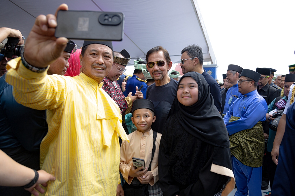 TUTONG, 23 JULAI – Wajah-wajah ceria dan keterujaan rakyat dan penduduk di daerah Tutong menanti keberangkatan Kebawah Duli Yang Maha Mulia Paduka Seri Baginda Sultan Haji Hassanal Bolkiah Mu’izzaddin Waddaulah, Sultan dan Yang Di-Pertuan Negara Brunei Darussalam jelas terpancar apabila masing-masing mencari tempat sesuai untuk mendapat wajah raja kesayangan rakyat dengan lebih dekat lagi pada Majlis Ramah Mesra dan Junjung Ziarah bersama Rakyat dan Penduduk Daerah Tutong, hari ini