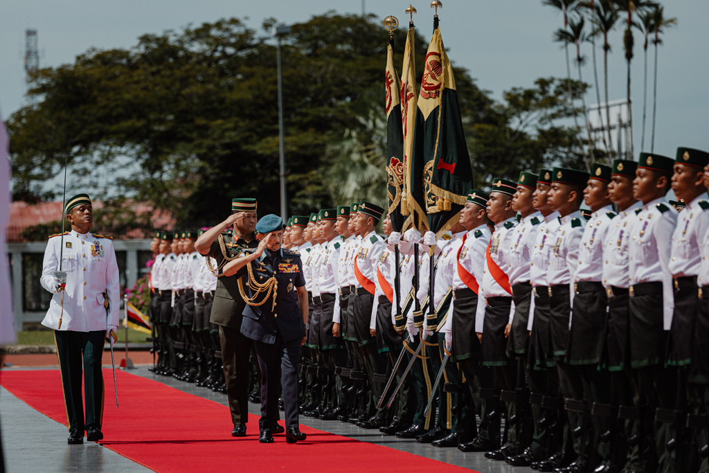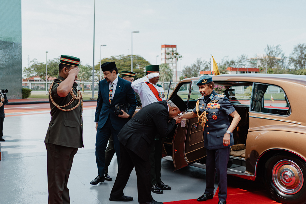 Keberangkatan tiba Kebawah Duli Yang Maha Mulia di Padang Kawad Blok Menara, Kementerian Pertahanan dijunjung oleh Menteri di JPM dan Menteri Pertahanan Kedua, Yang Berhormat Pehin Datu Lailaraja Mejar Jeneral (B) Dato Paduka Seri Haji Halbi bin Haji Mohd Yussof, dan Pemerintah Angkatan Bersenjata Diraja Brunei (ABDB), Mejar Jeneral Dato Paduka Seri Haji Muhammad Haszaimi bin Bol Hassan.