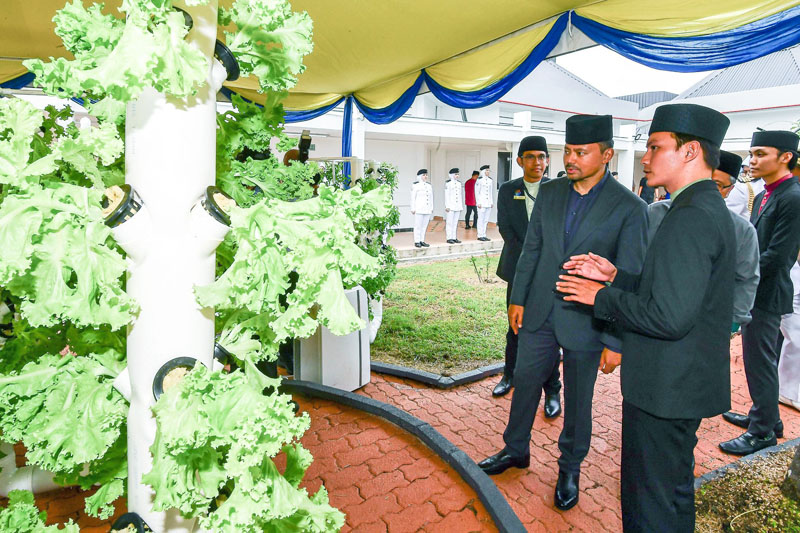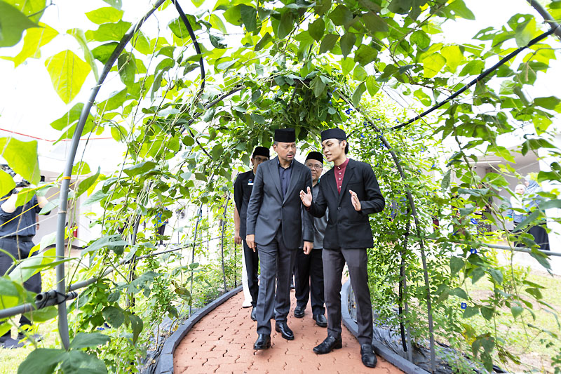 Duli Yang Teramat Mulia kemudian berkenan menyaksikan pameran berkonsepkan urban farming dan teknik tanaman moden yang dibina oleh mahasiswa dan mahasiswi Fakulti Pertanian iaitu tanaman trellis dan sistem pertanian menegak.