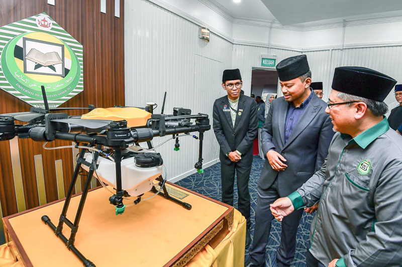 Sebelum berangkat meninggalkan majlis, Duli Yang Teramat Mulia berkenan menerima pesambah berupa dron yang disembahkan oleh Rektor UNISSA.