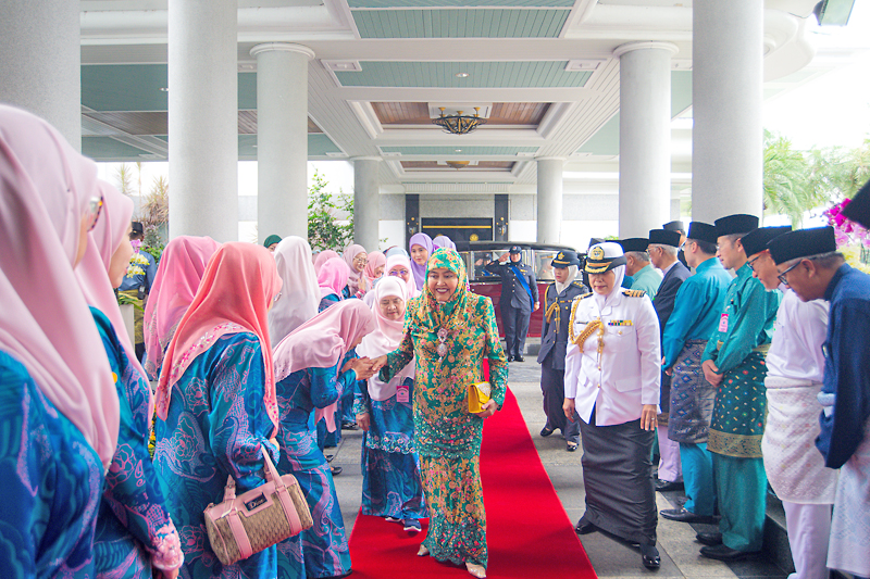 Berangkat sama, Yang Teramat Mulia Paduka Seri Pengiran Anak Isteri Pengiran Anak Sarah, Yang Amat Mulia Pengiran Anak Isteri Pengiran Raabi’atul ‘Adawiyyah, Yang Amat Mulia Pengiran Bini Hajah Faizah, Yang Teramat Mulia Paduka Seri Pengiran Anak Puteri Hajah Rashidah Sa’adatul Bolkiah, Yang Teramat Mulia Paduka Seri Pengiran Anak Puteri Hajah Majeedah Nuurul Bolkiah, Yang Teramat Mulia Paduka Seri Pengiran Anak Puteri Hajah Hafizah Sururul Bolkiah dan Yang Teramat Mulia Paduka Seri Pengiran Anak Puteri Hajah Amal Umi Kalthum Al-Islam.