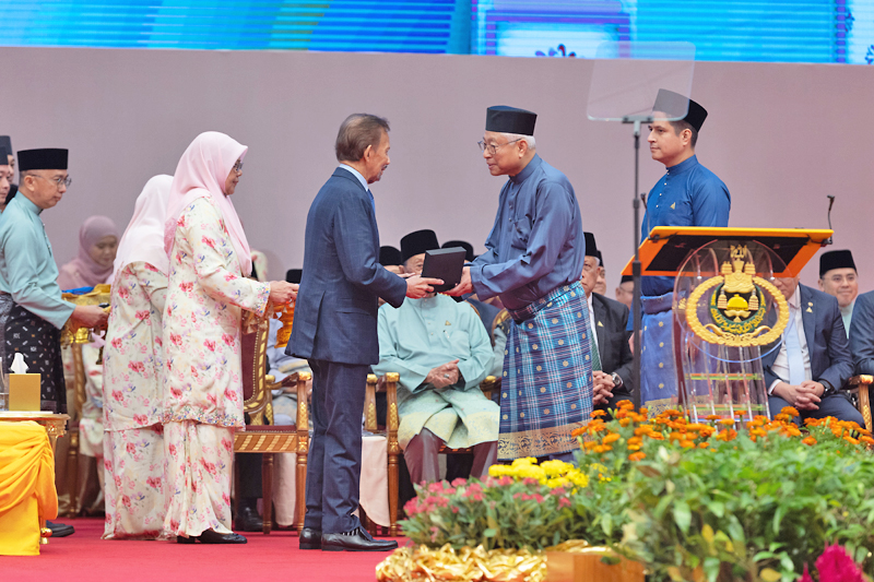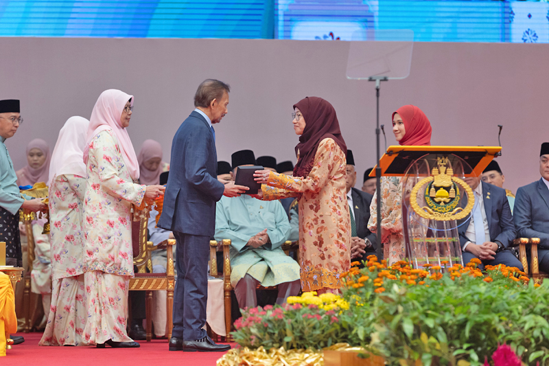Seterusnya, Baginda Sultan berkenan menyempurnakan pengurniaan anugerah-anugerah Hari Guru ke-35 kepada para penerima yang terdiri daripada seorang penerima Anugerah Pendidikan Sultan Haji Omar ‘Ali Saifuddien (SHOAS) iaitu Dato Seri Setia Haji Yusoff bin Haji Ismail, empat orang penerima Anugerah Guru Berjasa iaitu Dato Paduka Haji Mohd Daud bin Haji Mahmud, Hajah Norjum binti Haji Yusop, Dato Paduka Dr Haji Omar bin Haji Khalid dan Hajah Mas Tuyah binti Abdul Ghani, sembilan orang pe-nerima Anugerah Guru Cemerlang iaitu Profesor Dr Haji Noor Azam bin Orang Kaya Maha Bijaya Haji Othman, Dayang Rasimah binti Haji Abang, Chow Shean Jen, Dayang Erna Surayana binti Haji Abdul Rahman, Tan Chun Yang, Dayang Norsam @ Nurul ‘Aliyah binti Haji Serudin @ Sarudin, Dayang Amal Nabilah binti Haji Suhaimi, Awang Abu Mah Da bin Haji Abdul Wahab dan Dayang Surayati binti Haji Aman serta 30 orang penerima Anugerah Penghargaan Hari Guru (Special Mention).