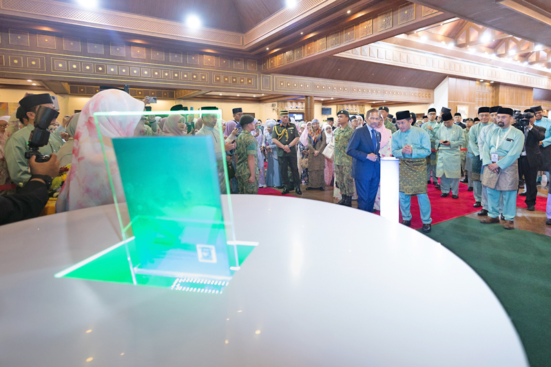 Di ruang centrepiece, Baginda Sultan berkenan menyaksikan pameran petikan titah Kebawah Duli Yang Maha Mulia dan Syair Al-Marhum Sultan Haji Omar ‘Ali Saifuddien Sa’adul Khairi Waddien.