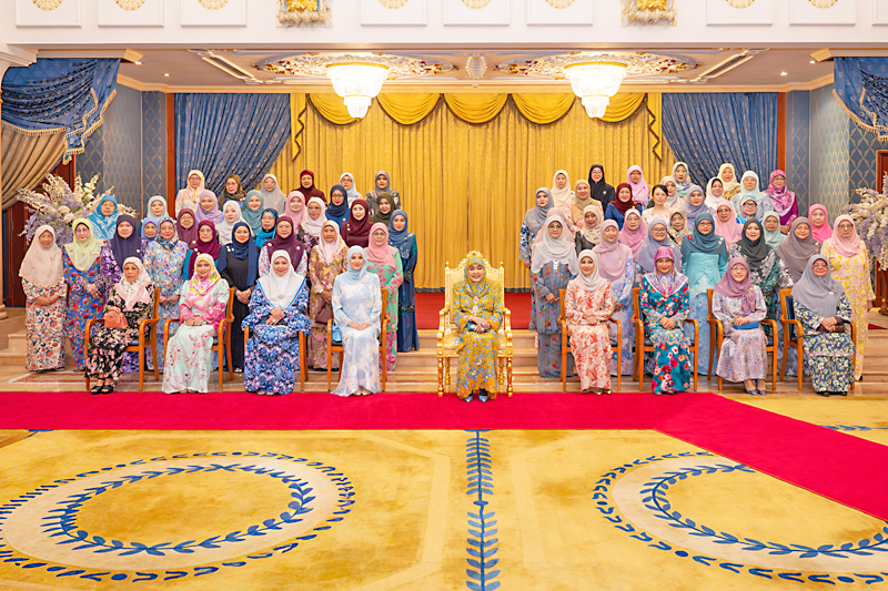 Berangkat sama ke majlis tersebut ialah Yang Amat Mulia Pengiran Anak Isteri Anisha Rosnah; Yang Amat Mulia Pengiran Bini Hajah Faizah; Yang Teramat Mulia Paduka Seri Pengiran Anak Puteri Hajah Rashidah Sa’adatul Bolkiah; Yang Teramat Mulia Paduka Seri Pengiran Anak Puteri Hajah Majeedah Nuurul Bolkiah; Yang Teramat Mulia Paduka Seri Pengiran Anak Puteri Hajah Hafizah Sururul Bolkiah; Yang Teramat Mulia Paduka Seri Pengiran Anak Puteri Hajah Masna; dan Yang Teramat Mulia Paduka Seri Pengiran Anak Puteri Hajah Amal Umi Kalthum Al-Islam.