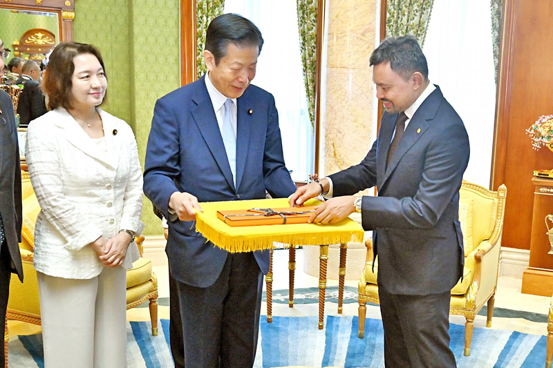 BANDAR SERI BEGAWAN, 10 JULAI – Duli Yang Teramat Mulia Paduka Seri Pengiran Muda Mahkota Pengiran Muda Haji Al-Muhtadee Billah, Menteri Kanan di Jabatan Perdana Menteri, pagi ini berkenan menerima mengadap ahli parlimen Jepun dan dua perwakilan asing pada majlis yang berlangsung di Qashr Al-Meezaan.