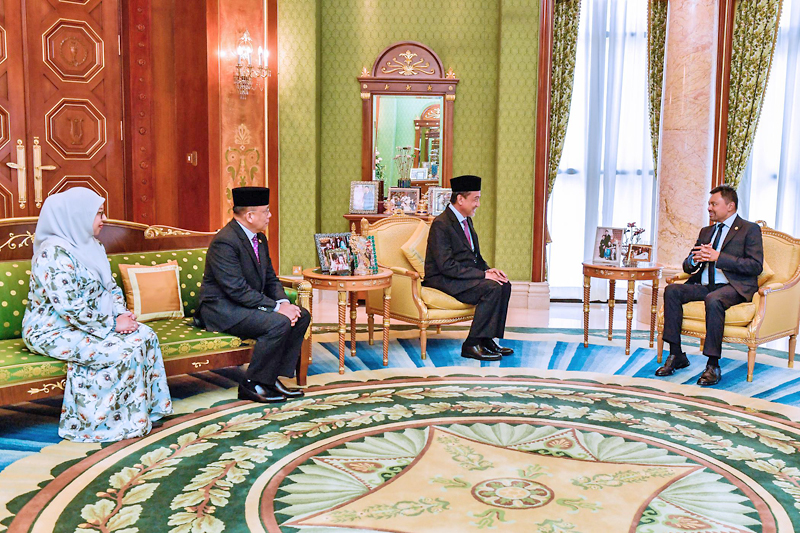 Duli Yang Teramat Mulia berkenan menerima mengadap Duta Besar Istimewa dan Mutlak Negara Brunei Darussalam ke Arab Saudi, Tuan Yang Terutama Haji Harun bin Haji Junid; Duta Besar Istimewa dan Mutlak Negara Brunei Darussalam ke Republik Indonesia, Tuan Yang Terutama Brigedier Jeneral (B) Dato Seri Pahlawan Haji Abdul Razak bin Haji Abdul Kadir dan Duta Besar Istimewa dan Mutlak Negara Brunei Darussalam ke Republik Turkiye, Puan Yang Terutama Dayang Noni Zurainah binti Haji Ismi.