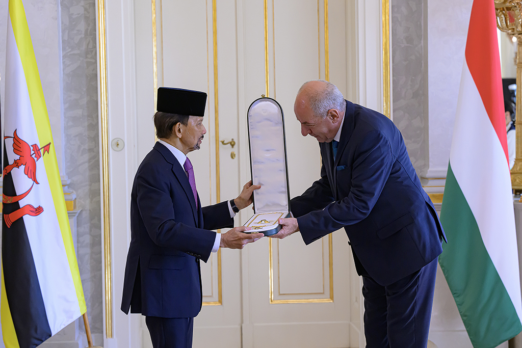 Tuan Yang Terutama Presiden Hungary menganugerahkan Bintang Kebesaran Hungary The Grand Cross of The Hungarian Order of Merit with Chain and Gold Star kehadapan Majlis Kebawah Duli Yang Maha Mulia Paduka Seri Baginda Sultan dan Yang Di-Pertuan Negara Brunei Darussalam, yang mana anugerah tersebut, antara lainnya sebagai satu pengiktirafan dan simbol komitmen Hungary untuk terus bekerjasama dengan Negara Brunei Darussalam dalam memelihara kesejahteraan rakyat kedua-dua buah negara. Anugerah tersebut merupakan penghormatan tertinggi daripada Hungary yang telah diwujudkan sejak negara berkenaan mencapai kemerdekaan.
