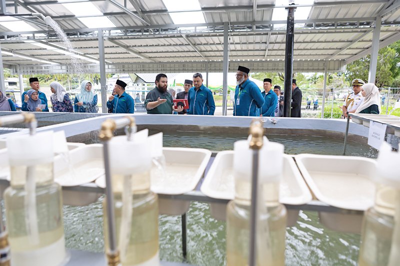 Duli Yang Teramat Mulia turut berkenan melawat kawasan penetasan ikan yang dibangunkan oleh Dr Mohammad Bodrul Munir dari Fakulti Pertanian, usaha pertama UNISSA dalam pembiakan ikan air tawar seperti tilapia, ikan keli, patin, karok dan kap, yang diyakini menyumbang kepada keselamatan makanan dan pembangunan industri akuakultur negara.